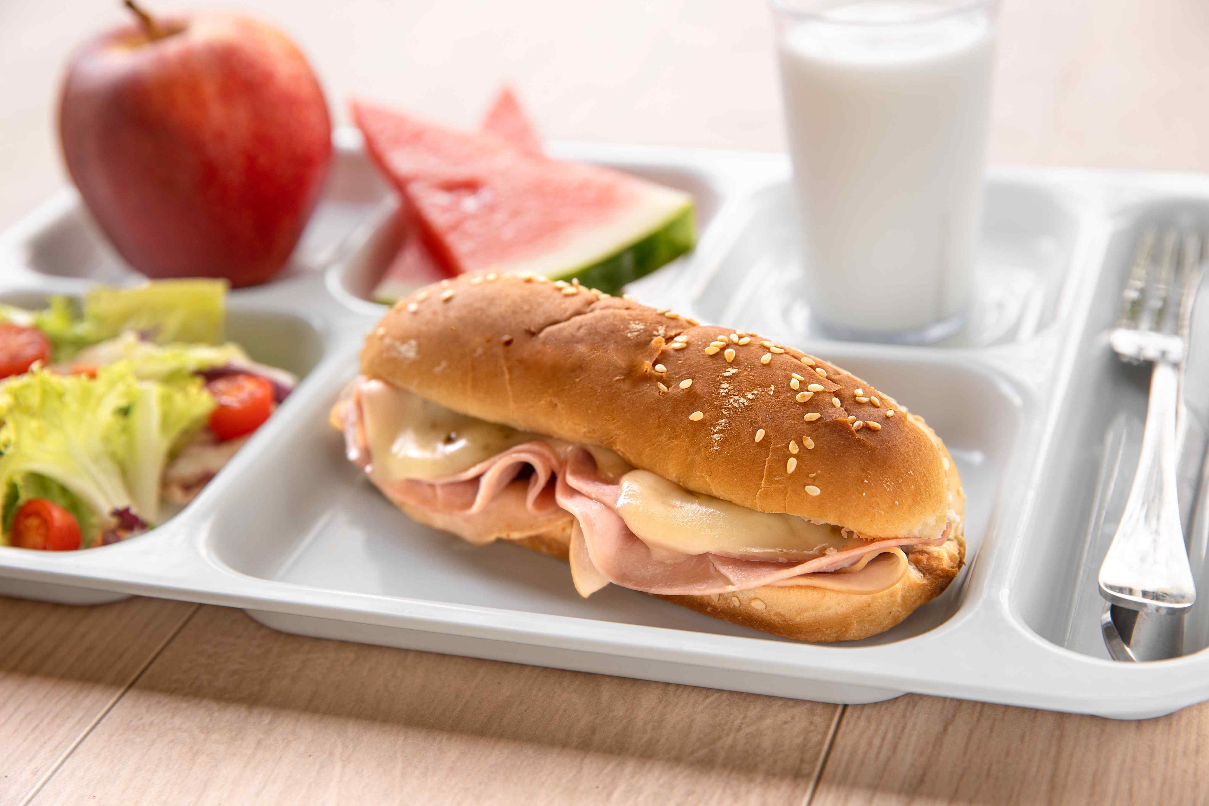 Put 1 slice of cheese (.75oz), 2 slices of turkey (.7oz each), and 2 slices of ham (.7oz) on each bun.